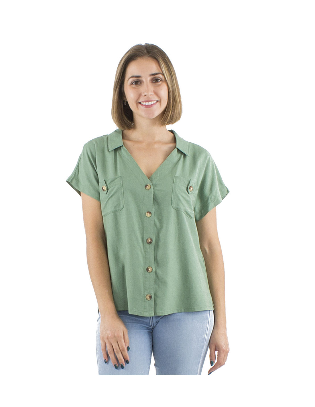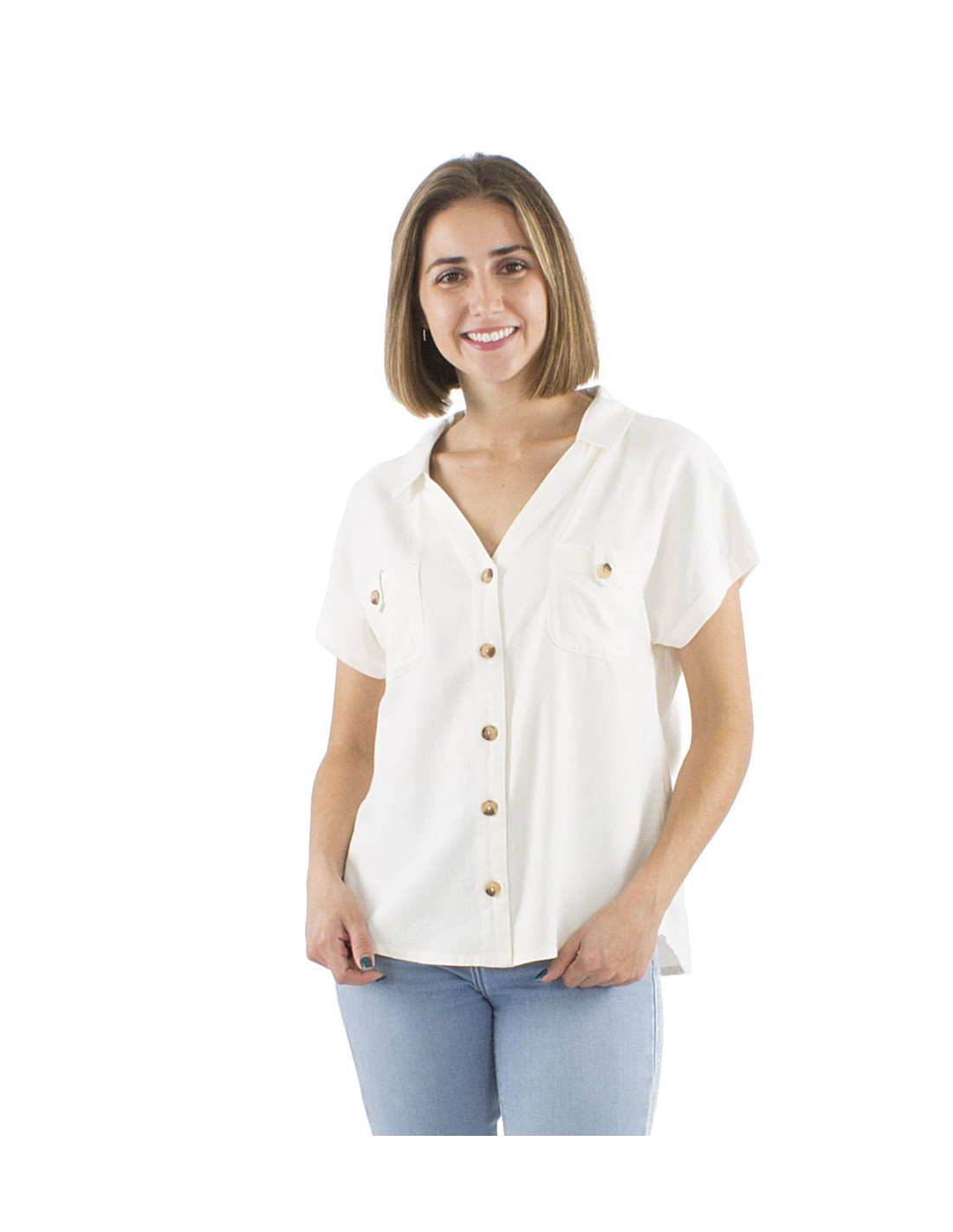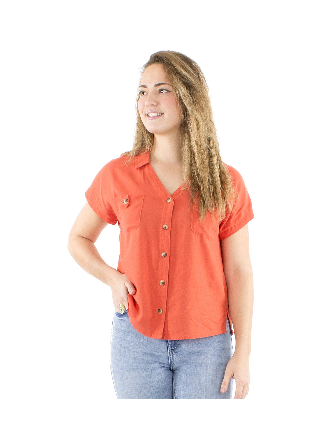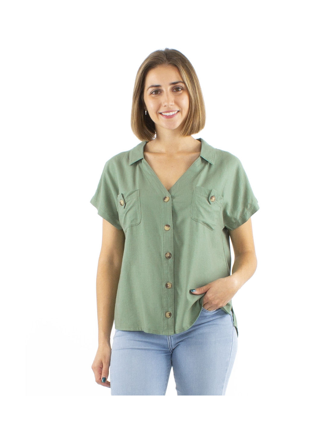 Chemisier 54% lin 46% viscose boutonné avec poches poitrine