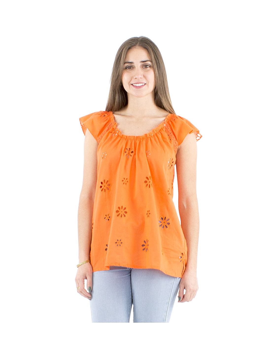 Chemisier coton blanc brodé emmanchure Raglan