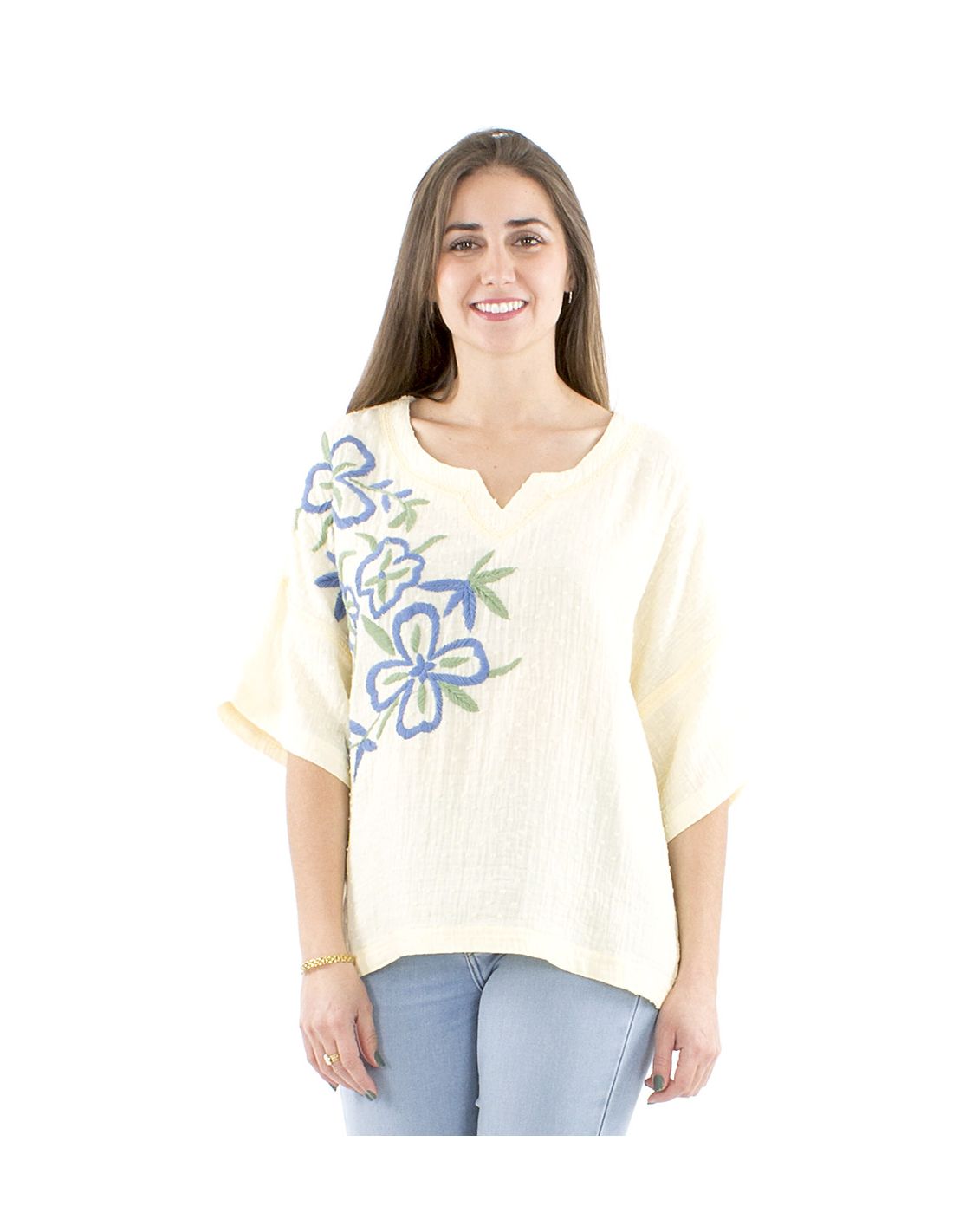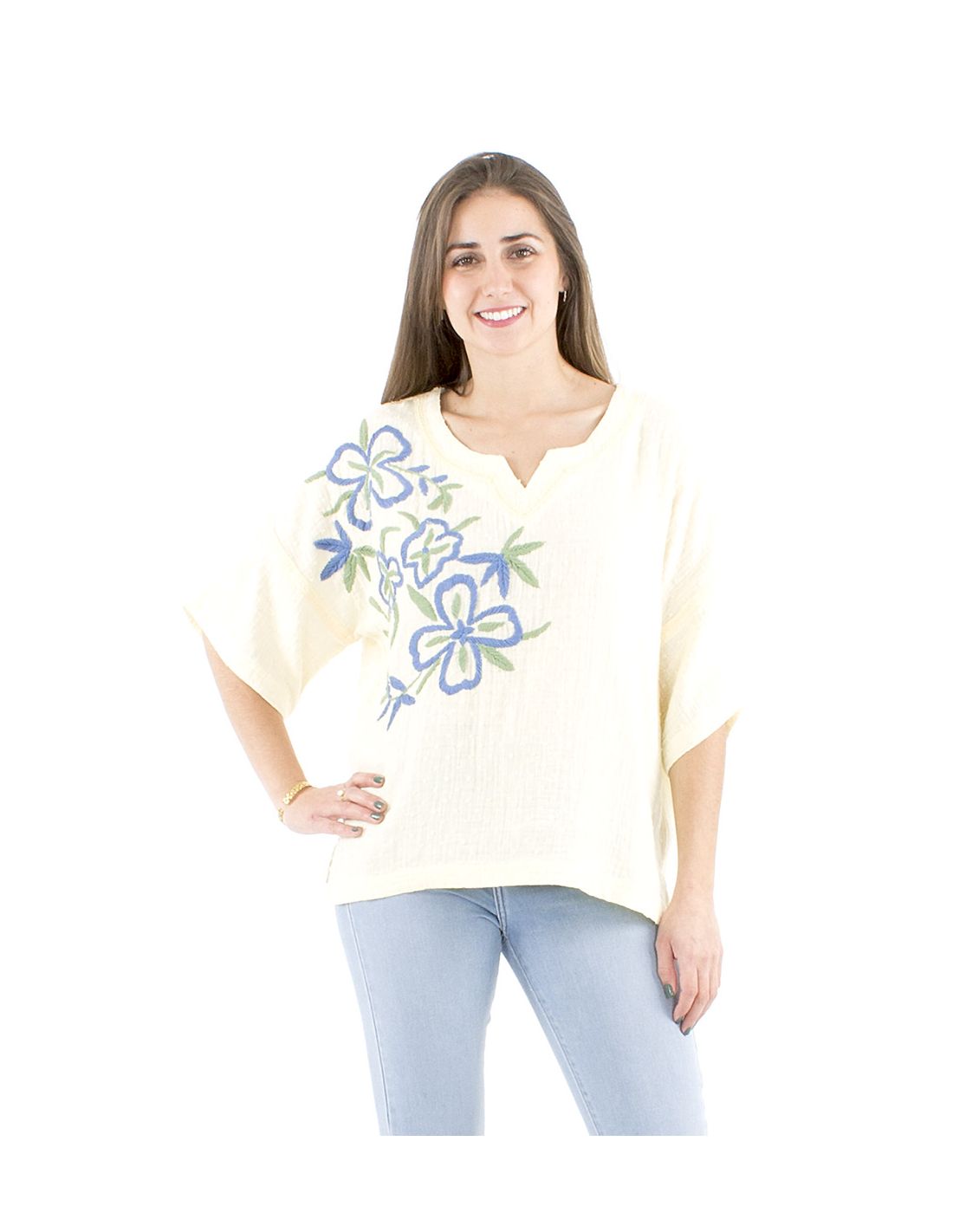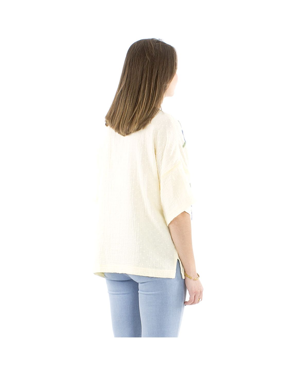Chemisier coton manches courtes brodé main gaze