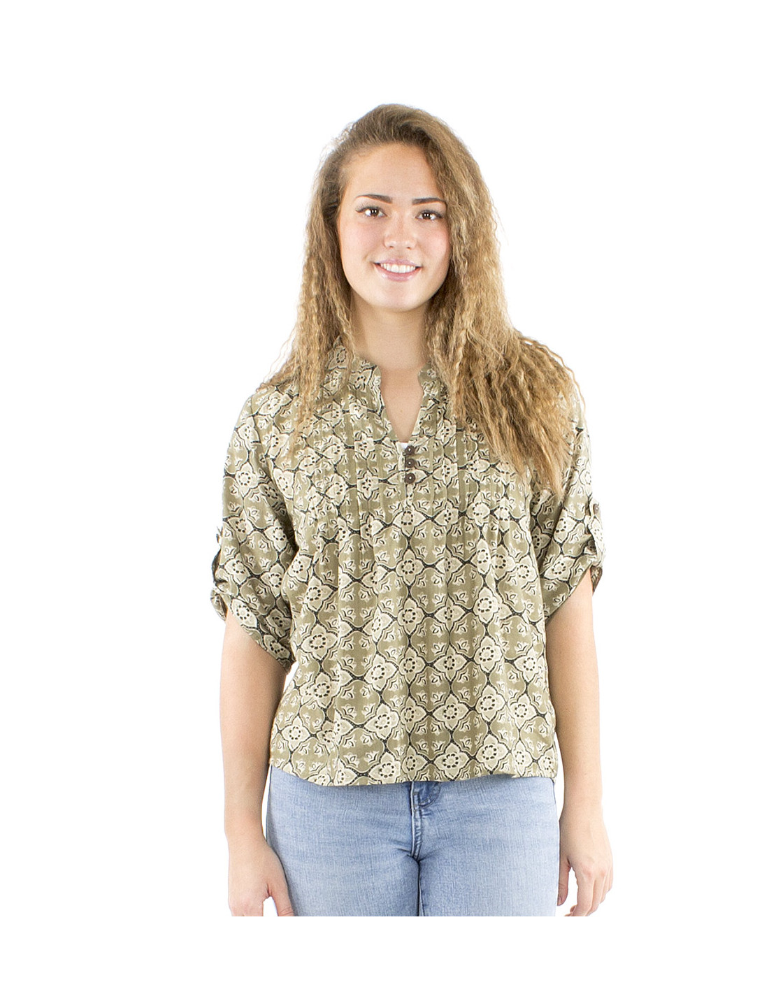 Chemisier coton Block 3 boutons manches 3/4 imprimé 3012