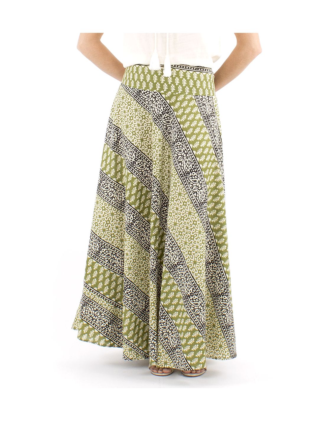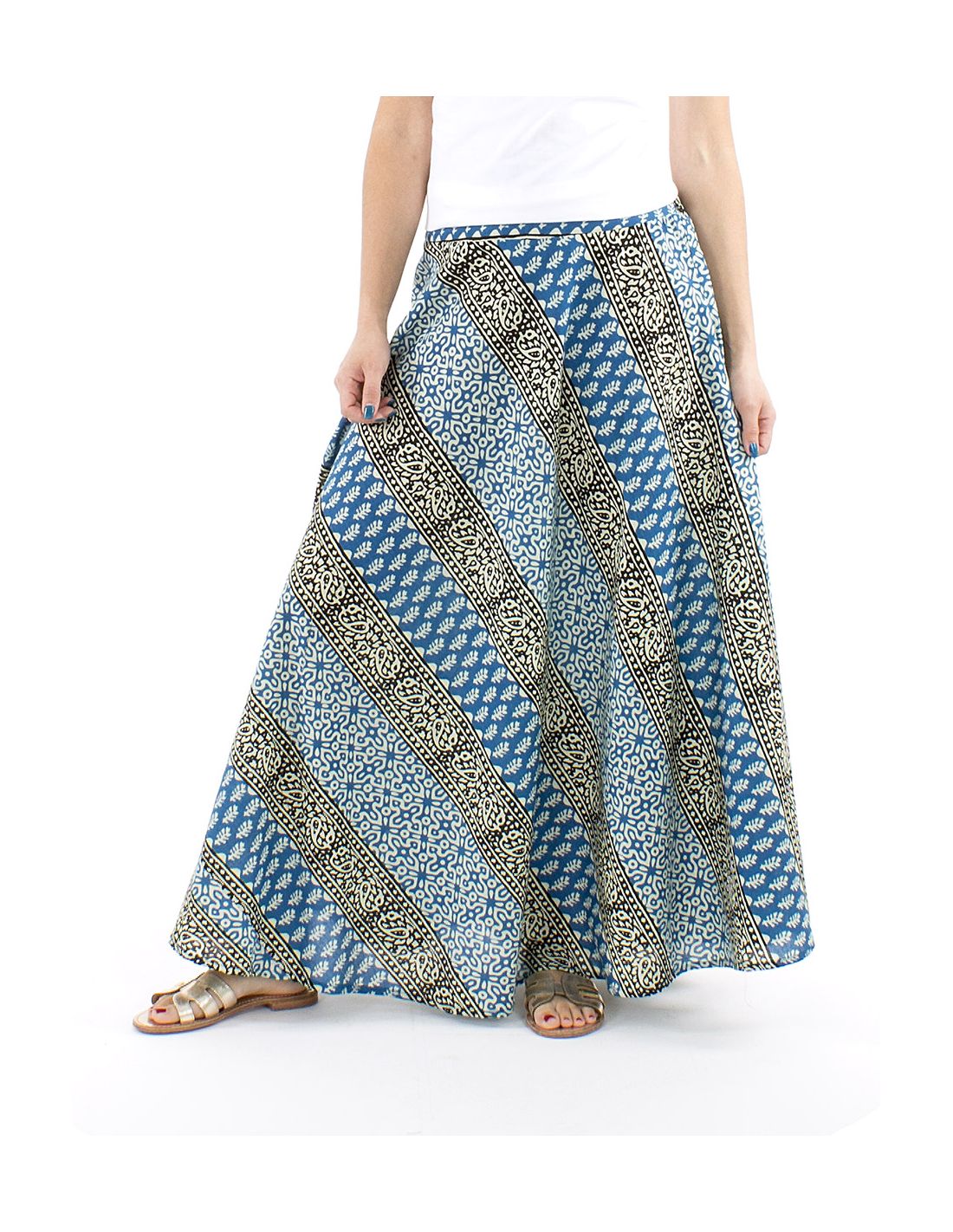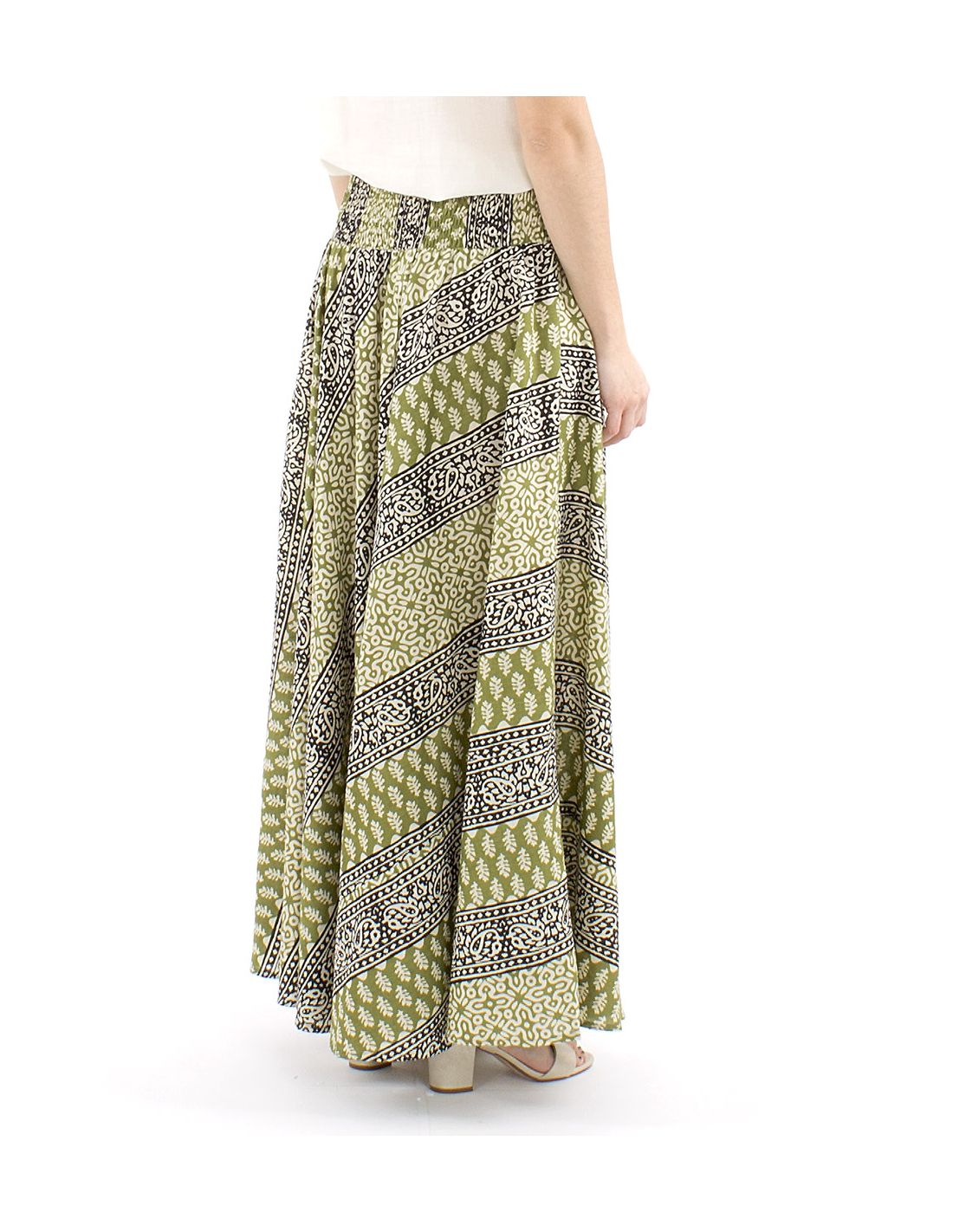 Jupe longue coton biais block 1/2 élastique imprimé 3009