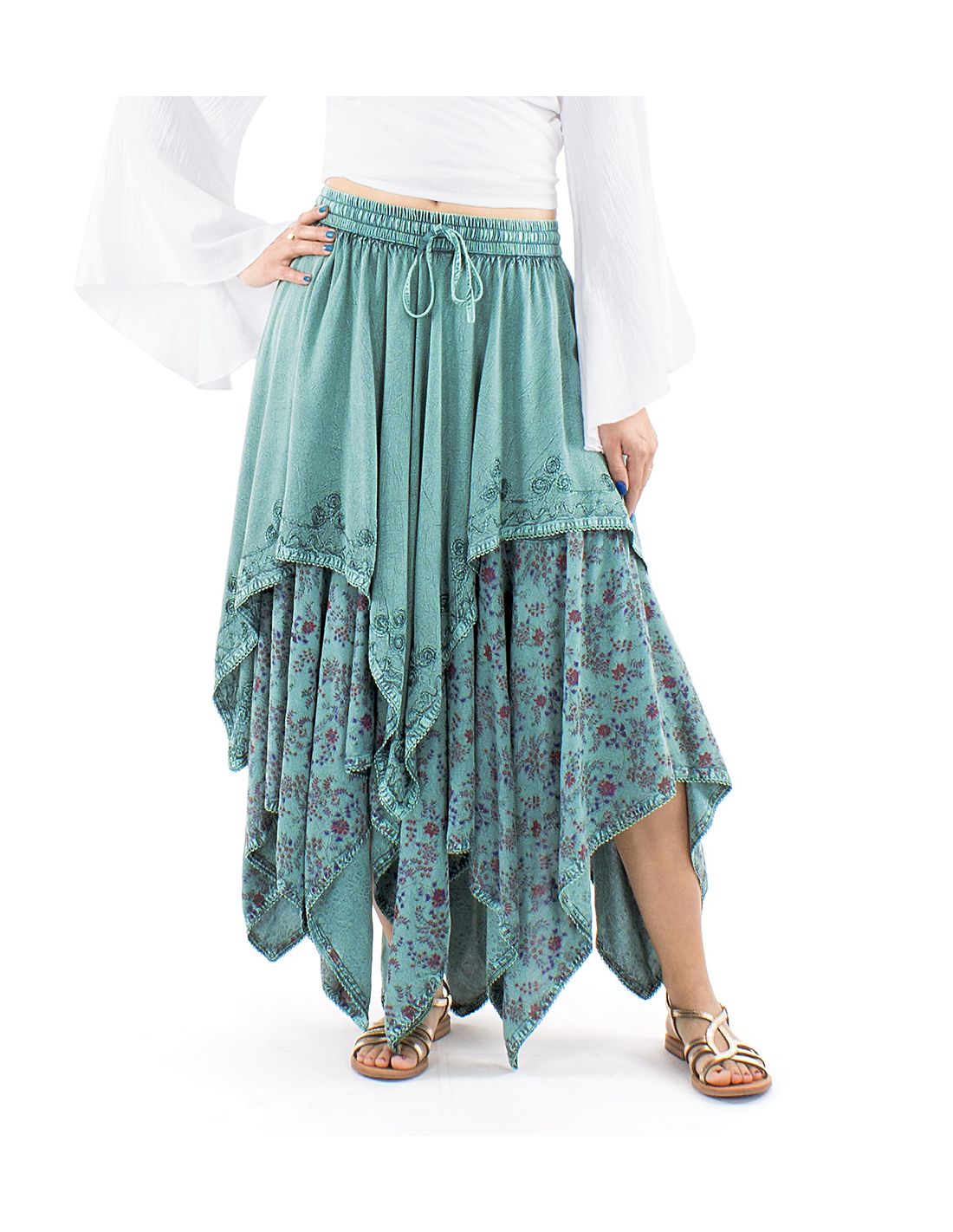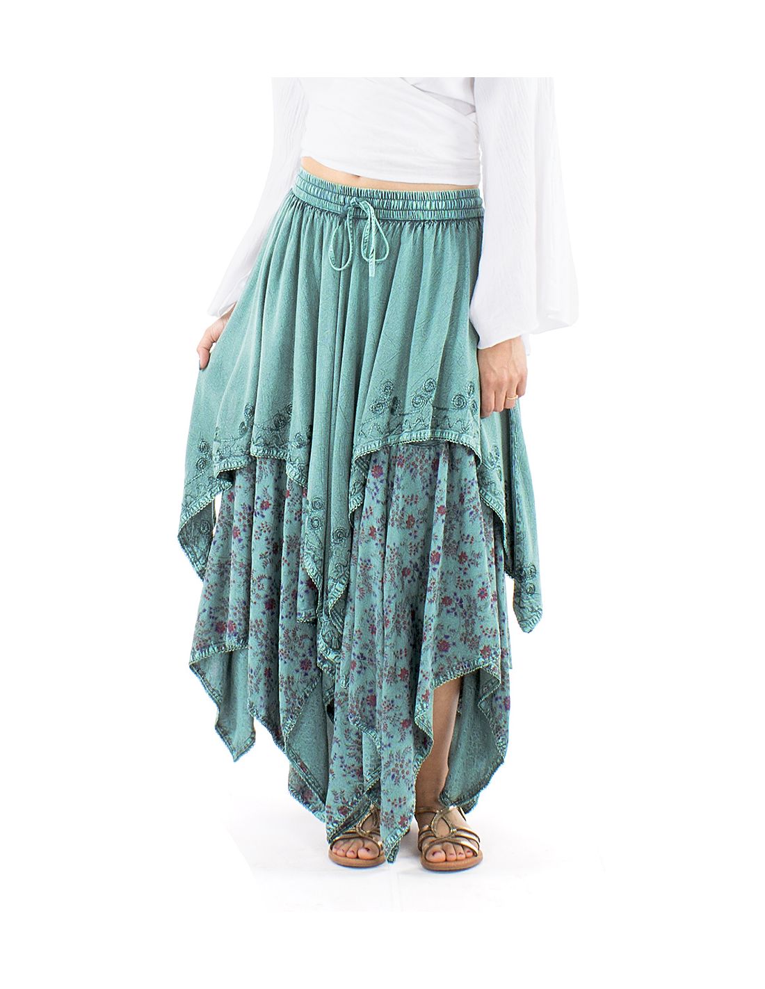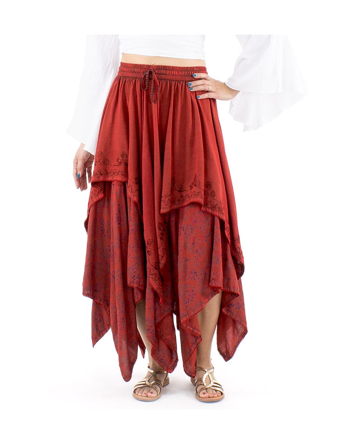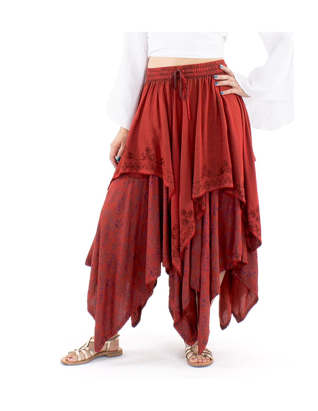 Jupe viscose SW princesse brodée bas pointes
