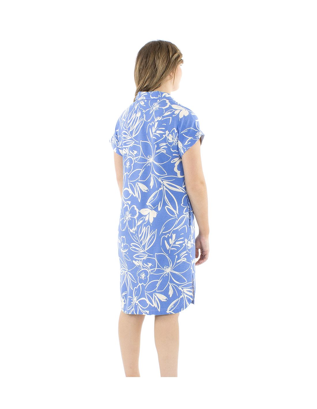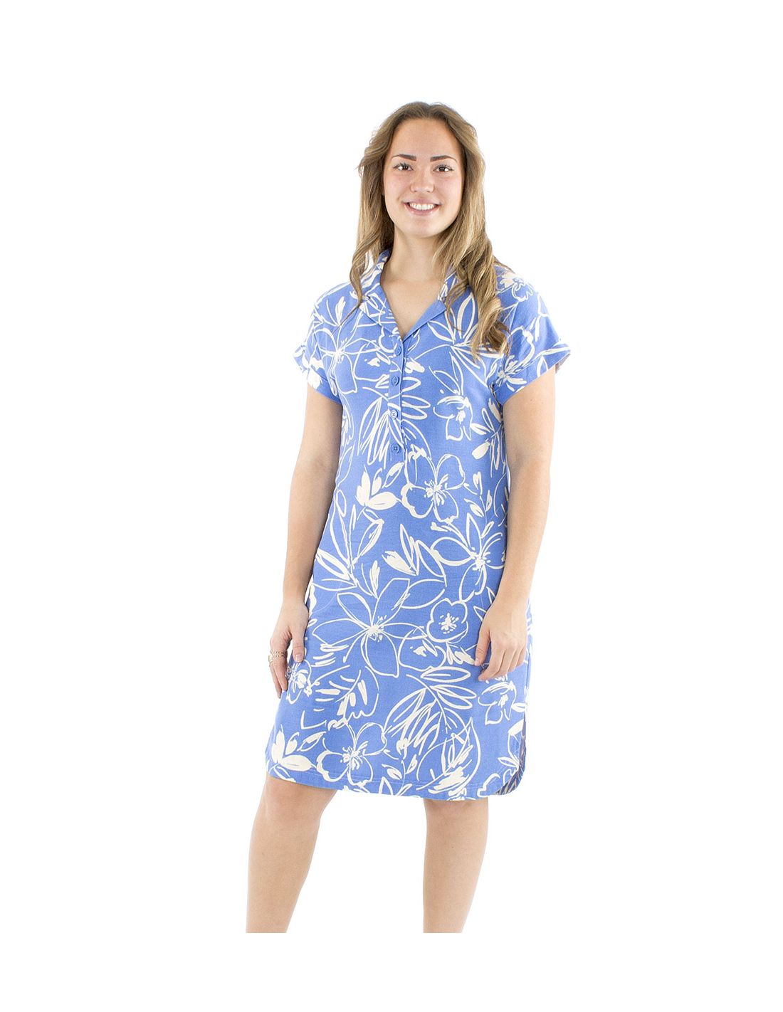 Robe 70% viscose 30% lin boutonnée manches courtes imprimé fleurs
