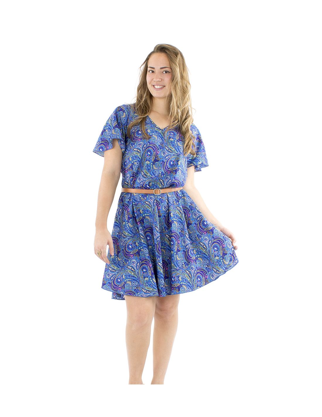 Robe polyester sari biais manches courtes
