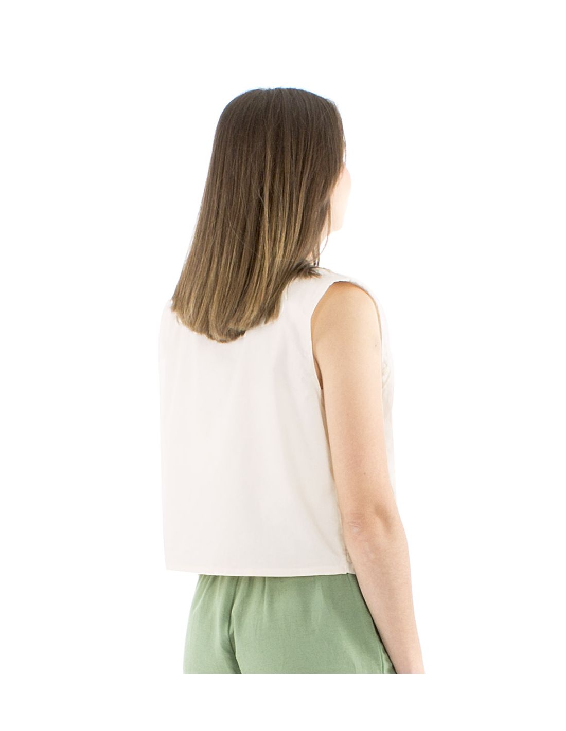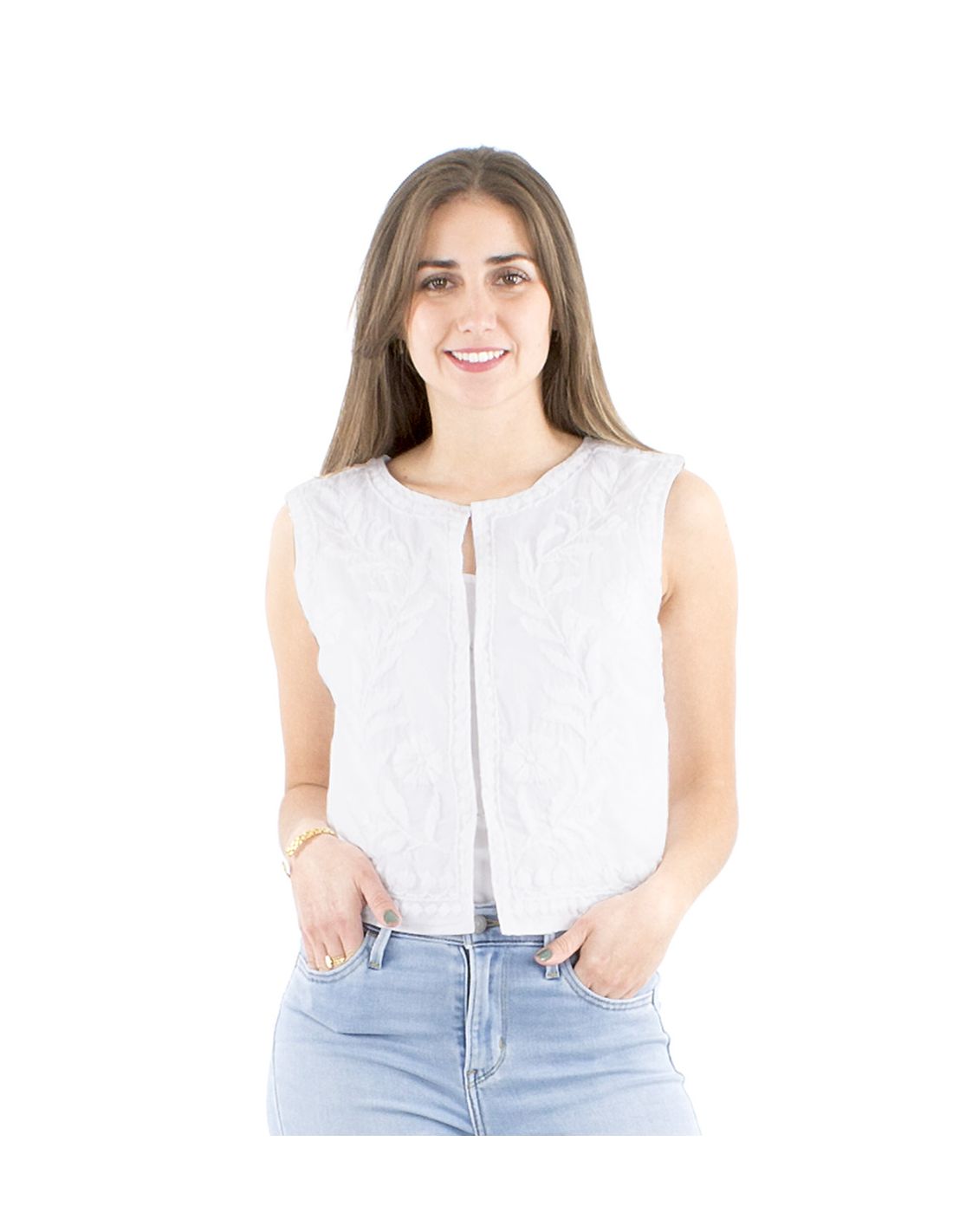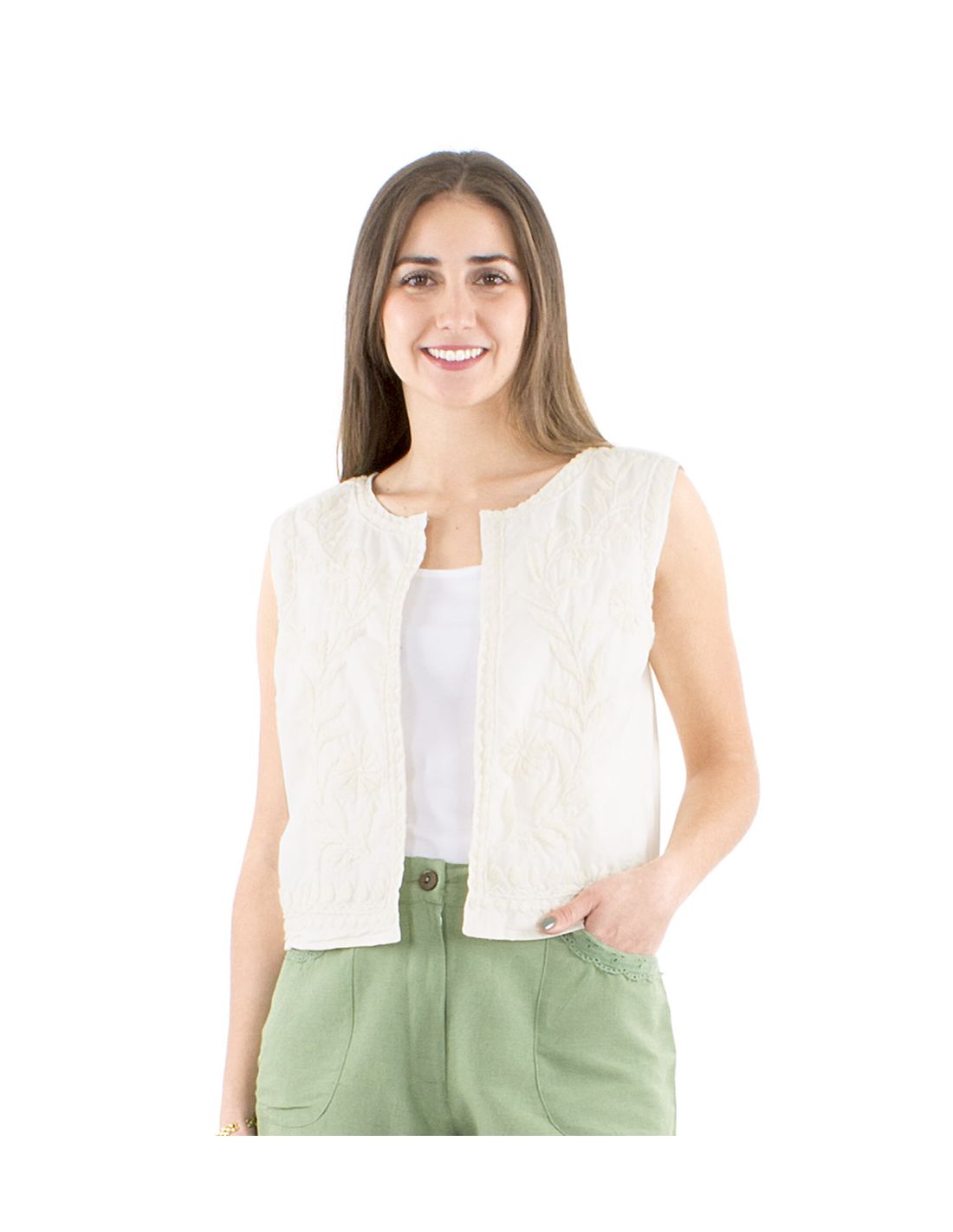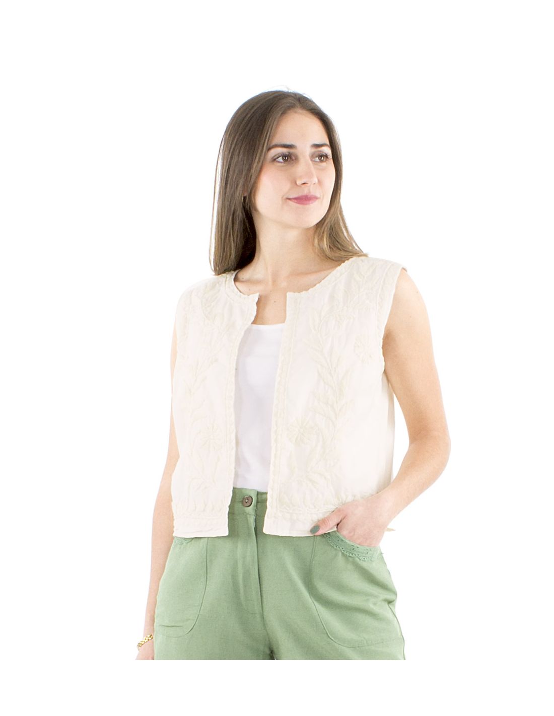 Gilet coton blanc brodé main sans manches